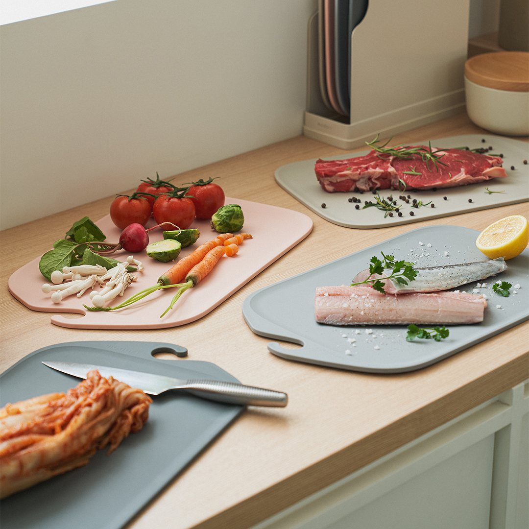 防止食材交叉感染,分開使用不同顏色的砧板,健康料理的開始!